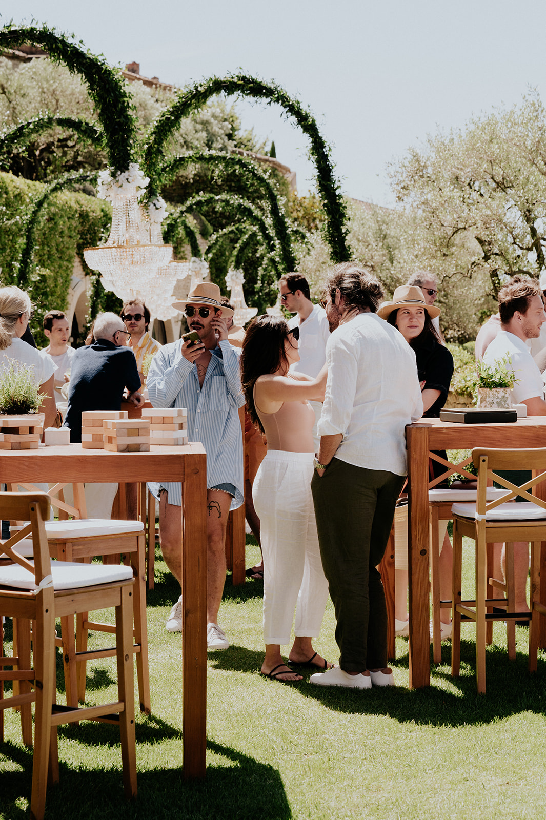 Toute la soirée, entourés d’invités venus des quatre coins du monde, les amoureux ont donné le ton d’un mariage à la fois chaleureux et sophistiqué. Pétanque et champagne, what else ?!
